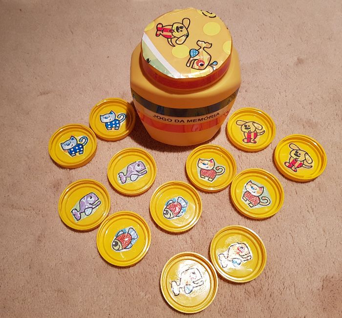 - 14 tampinhas plásticas rasas de 4 a 5cm de circunferência;