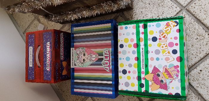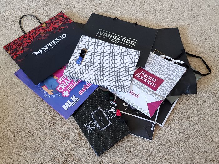 - Caixas de papelão; - Papéis de presente inutilizados; - Sacolas de papel; - Cola branca; - Fitas adesivas coloridas.