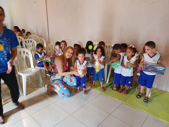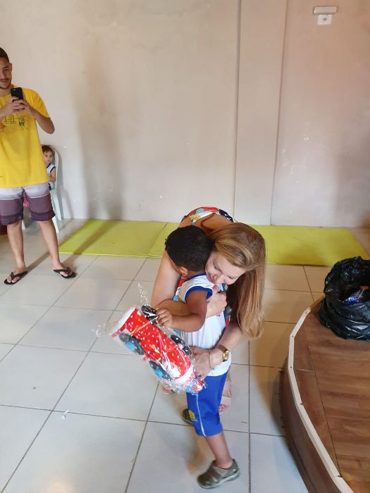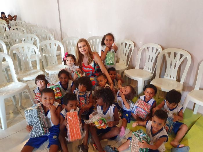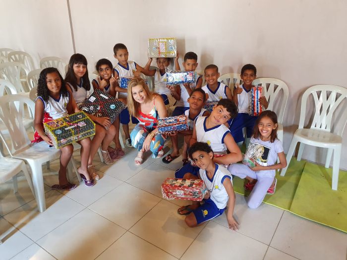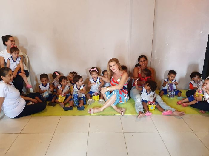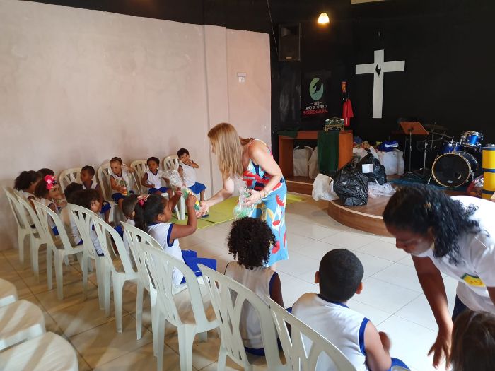Comprei brinquedos e fiz doações em anos anteriores, mas este ano foi especial porque plantei uma sementinha de sustentabilidade em cada criança.