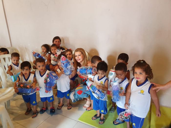 Foi muito gratificante entregar os 106 brinquedos reciclados que fiz.