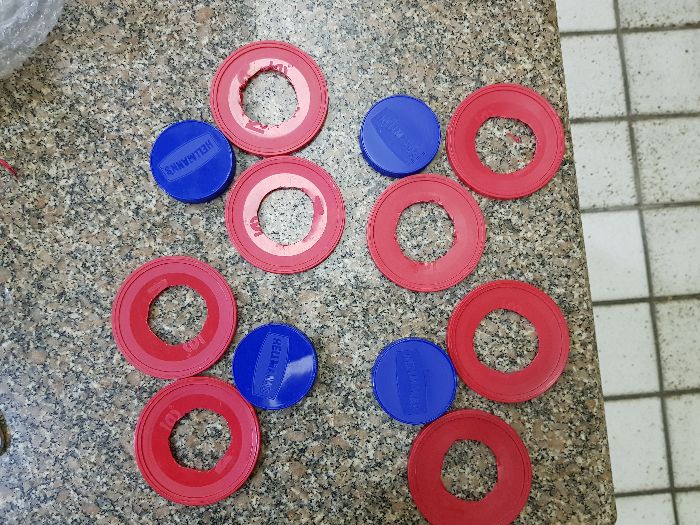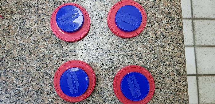 - 03 tampas plásticas coloridas de desinfetante ( p/ chapéus);