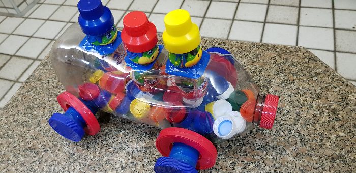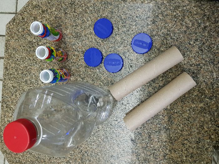 - 40 tampinhas plásticas coloridas de refrigerantes e água mineral;
