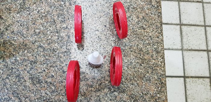 - 04 tampas plásticas finas de 05 cm de circunferência ( p/rodas)