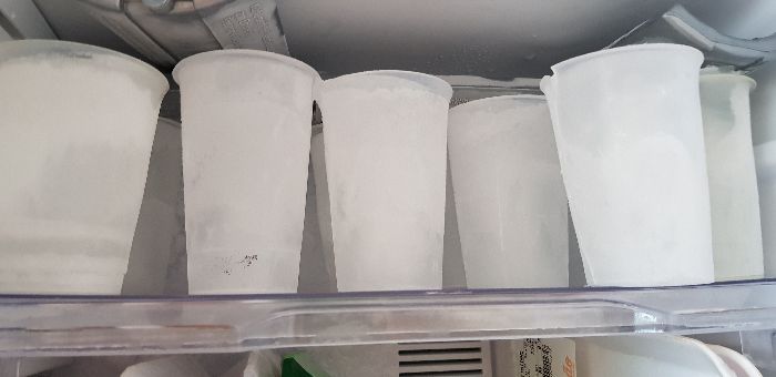 - Os copos deverão ser postos em água corrente para que o gelo se desprenda. Os copos poderão ser reutilizados por muito tempo, já que o tipo de plástico é bem resistente.